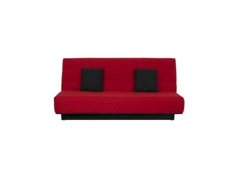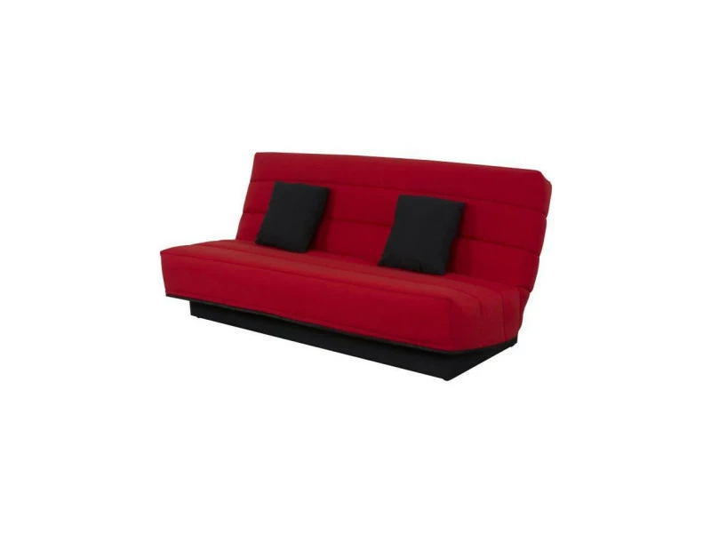 Banquette CC 120 x 190, mat 188×118, mousse polyether 20kg/m3 12,8 cm, ht 13 cm. Garanti 2 ans. coutil plateau lisse 100 % polypropylene. Som 114×185 2×9 lattes multiplis (53×8). Couette PEARL ROUGE ouate de polyester 2×180 gr, 100 % polyester, deux coussins carrĂ©s 70% coton 30 % polyester. Structure en panneau de particule & bois massif HT 19 cm. Quatre pieds ronds ht 15 mm en polyethylene noir