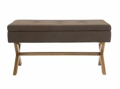 Banquette Namaro En Tissu Avec Espace De Rangement Pieds Bois De Caoutchouc , Marron/antique Clair
