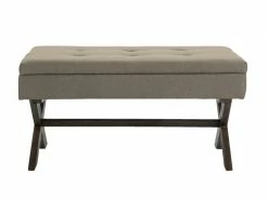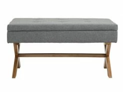 Banquette Namaro En Tissu Avec Espace De Rangement Pieds Bois De Caoutchouc , Gris/antique