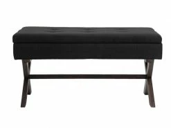 Banquette Namaro En Tissu Avec Espace De Rangement Pieds Bois De Caoutchouc , Noir /antique Clair