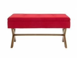 Banquette Namaro En Tissu Avec Espace De Rangement Pieds Bois De Caoutchouc , Rouge/antique