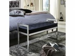 Banc En Tissu Velours Rembourré Noir – 100 X 40 X 47 Cm -pegane-
