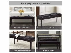 Banc En Tissu Velours Rembourré Noir – 100 X 40 X 56 Cm -pegane-