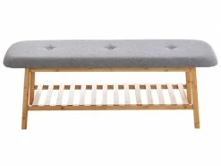 Banquette Marne En Tissu Avec Pieds Ronds En Bois De Bambou , Gris/120 Cm