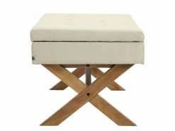 Banquette Namaro En Tissu Avec Espace De Rangement Pieds Bois De Caoutchouc , Crème/antique Clair