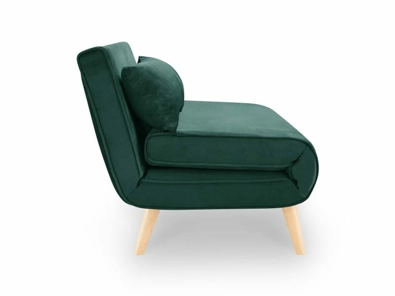 Banquette convertible 2 places en velours bleu TONKA Profitez au maximum de votre espace avec cette banquette 2 places modulable et convertible. Idéal pour les petits espaces, afencez-le selon vos envies et votre pièce. Il vous invite à la détente grâce à la position assise, relax, méridienne ou lit . Passez de la banquette au lit confortable en un clin d’oeil avec notre clic clac 2 places Tonka. Lignes épurées dans le style scandinave et fonctionnalité sont les mots maîtres pour cette banquette convertible et design Tonka. Les couleurs tendances et le revêtement en velours apporteront de la fraîcheur à votre intérieur. Le modèle Tonka est disponible en 4 coloris – bleu, vert, gris et rose. Pieds en bois verni. Garnissage en mousse, densité 30 kg / m3. Revêtement en tissu 100% Polyester. Dimensions fauteuil : 121 cm x 81 cm x 75 cm Dimensions couchage : 121 cm x 185 cm x 42 cm