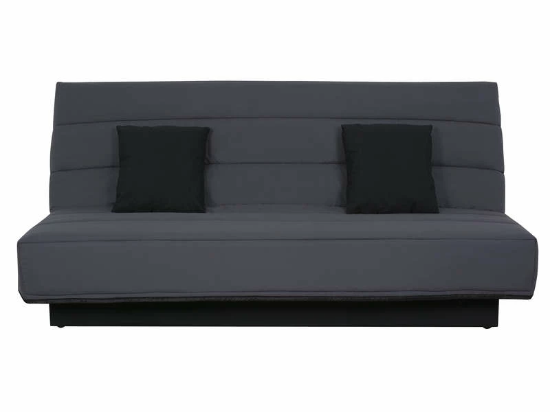 Alliez confort, design et fonctionnalité avec cette banquette clic-clac trois places en coton anthracite et noir. Idéale pour un studio, un salon ou un espace de détente, elle se déploie en un geste en un couchage ultra-confortable pour deux personnes. Grâce à son matelas mousse épais de 13cm, elle promet un repos aussi bénéfique que dans un vrai lit. Pratique, elle est dotée de deux coffres inférieurs pour y ranger vos couettes, oreillers et linge de lit. En bonus, ses deux coussins décoratifs sont fournis. Fabriquée en France.