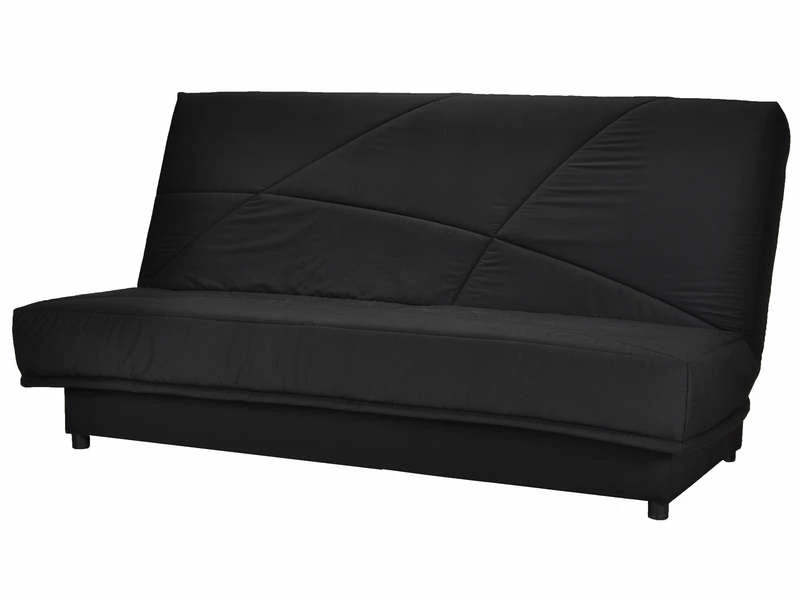 Design et fonctionnelle, cette banquette clic-clac trois places noire va devenir la meilleure alliée des petites surfaces! Pensé pour vous simplifier la vie, son revêtement en tissu microfibres se déhousse en un geste pour un entretien facile et rapide. Offrez-vous un couchage aussi confortable qu’un vrai lit pour deux personnes grâce à son matelas Bultex garni en mousse polyuréthane et son cadre métallique à lattes. Pratique, cette banquette est dotée d’un coffre de rangement pour y déposer vos couettes, oreillers et linge de lit. Fabriquée en France.
