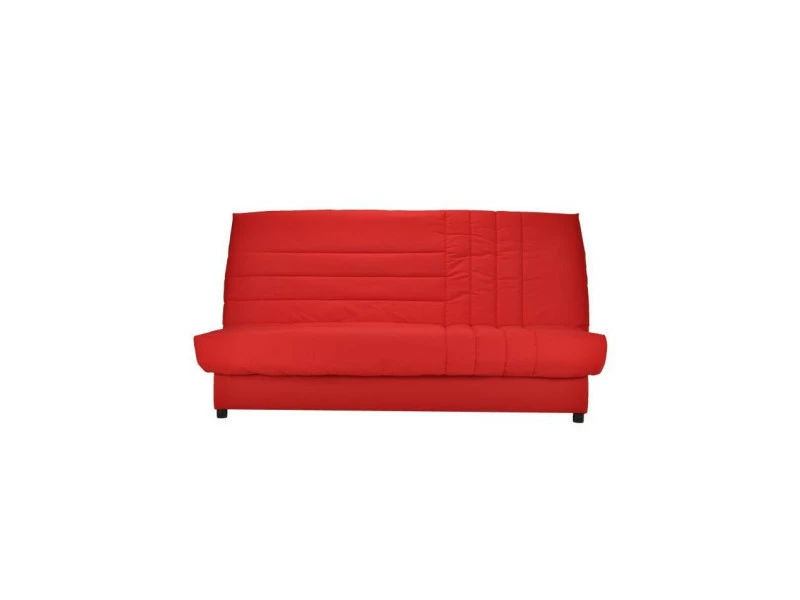 BEIJA Banquette clic-clac 3 places rouge – Style et design contemporain – Métal laqué époxy – Revetement : tissu 100% coton – Ferme – Mousse polyuréthane HR 38 kg/m³ – Matelas monobloc Bultex – Epaisseur : 11 cm – 18 lattes multiplis ton naturel – Couchage 130 x 190 cm – Coffre de rangement – Fabrication française – Canapé : L 192 x P 95 x H 101 cm – Assise : L 192 x P 58 x H 42 cm .