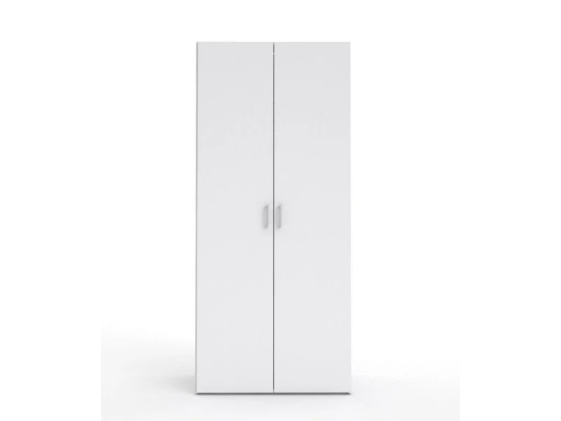 Armoire pratique et fonctionnelle avec deux portes battantes, dotée de charnières métalliques et poignées d’ouverture.