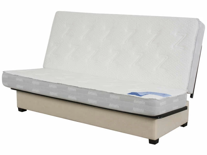 La banquette-lit clic-clac 130 cm est idéale comme couchage pour les petits espaces.Un gain de place et toujours de la qualité. Son matelas en latex de densité 65kg/m3 de la marque DUNLOPILLO offre une grande précision de soutien et une indépendance de couchage pour un confort zoné. De plus, elle possède un coffre de rangement, parfait pour y glisser votre couette. Elle est fabriquée en France.