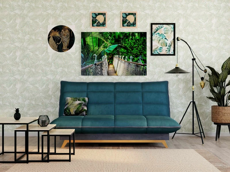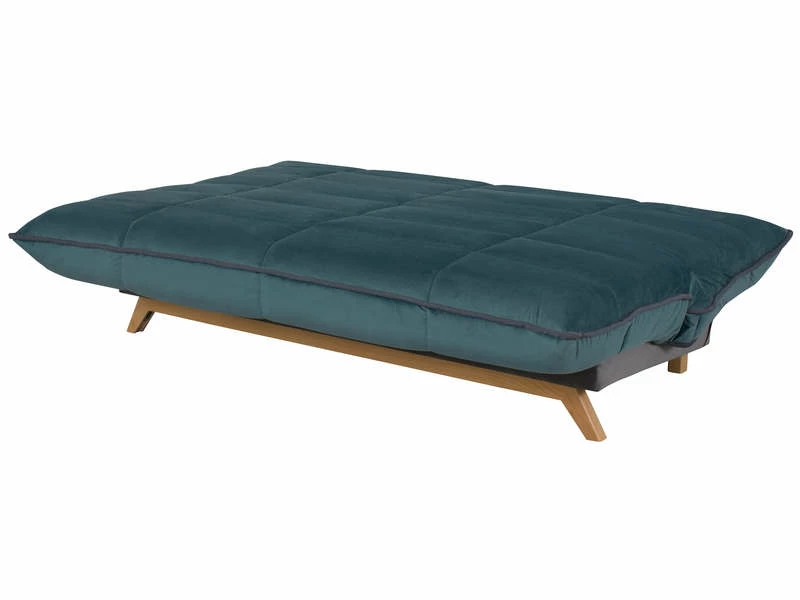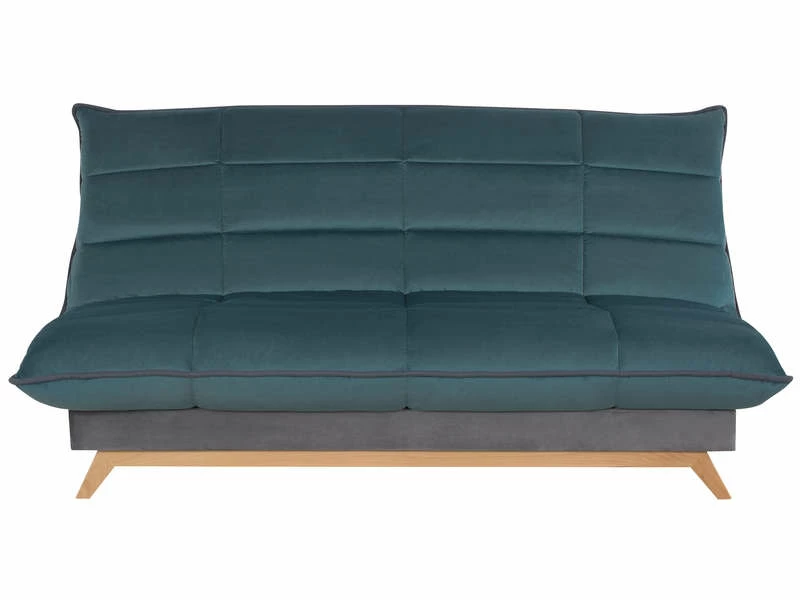 La banquette-lit clic-clac bicolore bleu pétrole et gris DUNLOPILLO TOUNDRA impose une influence nordique grâce à son piétement en bois. Elle est recouverte d’une couette ultra-douce, et la technologie de son matelas Dunlopillo vous promet un sommeil de qualité. Elle se déplie facilement en un couchage 120x188cm et possède une suspension 9 lattes multi bouleau pour accompagner au mieux les mouvements du dormeur pendant la nuit. Fabrication française.