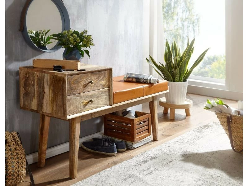 - Une couture visible comme élément décoratif sur le banc du vestibule