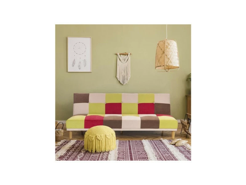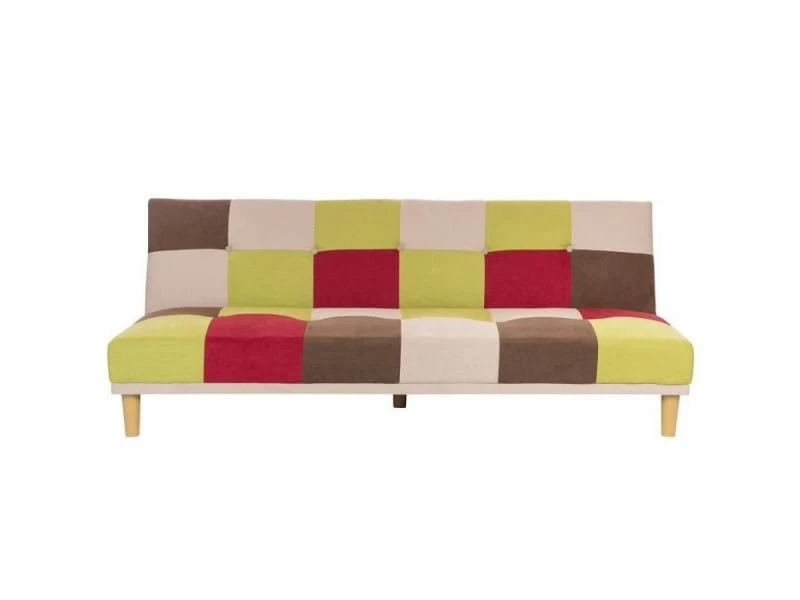 DARIA Banquette clic clac 3 places – Tissu patchwork gris clair – L 190 x P 77 x H 71 cm