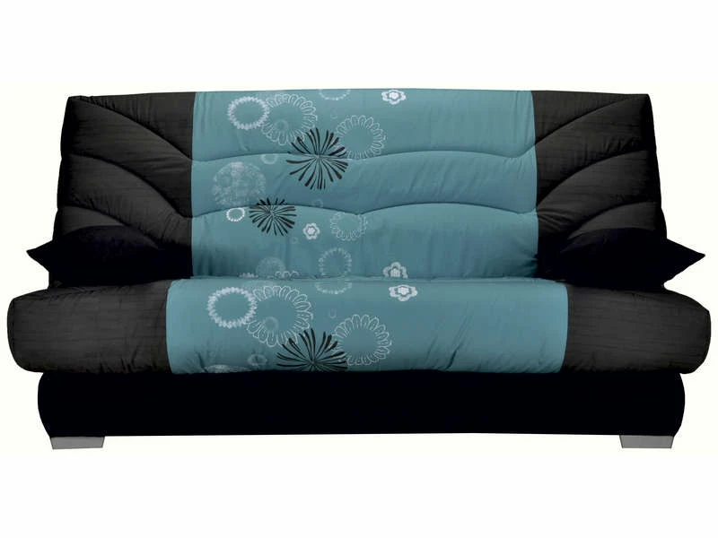 Avec cette housse pour clic-clac de 130 cmPRIMA MAORI bleue, votre canapé ajoutera à lui seul une touche de décoration dans votre salon. A la fois sobre et originale une large bande verticale bleue ornée d’un motif floral irrégulier décore la housse de coloris noir uni. Parfaite dans les intérieurs modernes, cette housse redonnera une nouvelle jeunesse à votre canapé clic-clac. Son garnissage mousse apporte du confort à l’assise, tout comme le matelassage du dossier. On aime les deux housses de coussin fournies qui terminent l’ensemble et permettent d’ajouter à votre canapé le confort d’un accoudoir.