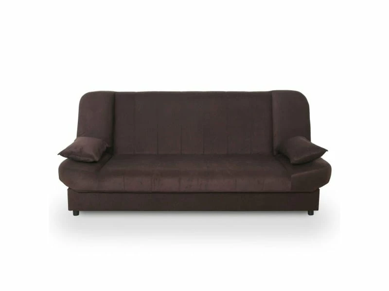 Fonctionnel et esthétique, notre canapé convertible MADDY sera parfait pour les petits appartements ou les chambres d’amis. Le clic clac MADDY s’adapte à tous les intérieurs grâce à son design contemporain et simple. Son revêtement en tissu microfibre uni réchauffera votre intérieur. Le canapé convertible MADDY se transforme rapidement en lit confortable grâce à son système d’ouverture clic clac. Il possède un coffre de rangement spacieux vous permettant de ranger couettes et oreillers. Un canapé idéal pour recevoir vos amis ou votre famille et pour leur offrir un couchage confortable. Avec notre clic clac MADDY, vous disposerez d’un couchage d’appoint pouvant accueillir 2 personnes. Existe en 3 coloris : noir, rouge et marron. Dimension du clic clac : L. 204 cm x l. 90 cm x H. 93 cm Dimension du couchage : 120 x 200 cm