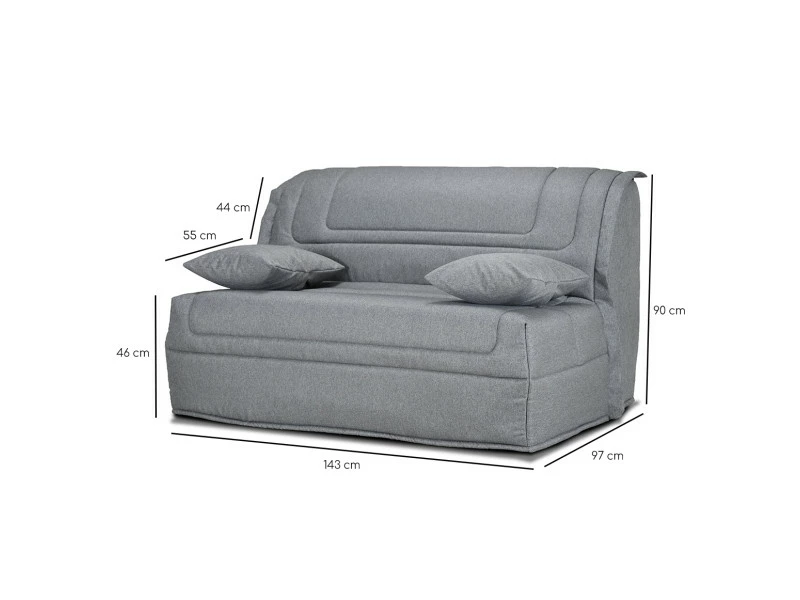 - DIMENSIONS APPROXIMATIVES : Canapé: L.143 cm x P.97 cm x H.90 cm. Assise : H.46 cm x P.55 cm. / Lit : L.140 cm x P.190 cm x H.46 cm.