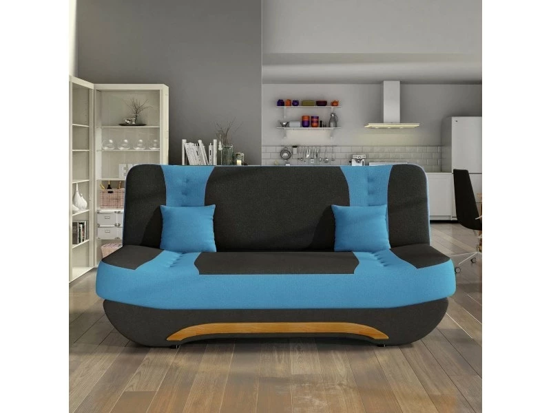 CanapĂ© convertible très pratique qui se transforme en un lit d’appoint en seulement 3 mouvements. EquipĂ© d’un coffre de rangement, vous pourrez y ranger couverture ou autre. L’effet bois au niveau du piètement de notre modèle lui apporte un cĂ´tĂ© chaleureux. Les deux coussins fournis avec le canapĂ© sont dĂ©houssables. Existe en plusieurs couleurs Dimensions canapĂ© : 190 cm x 90 cm x 94 cm Dimensions couchage : 184 cm x 118 cm Dimensions coussin : 30 cm x 30 cm