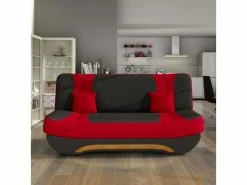 Canapé convertible très pratique qui se transforme en un lit d’appoint en seulement 3 mouvements. Equipé d’un coffre de rangement, vous pourrez y ranger couverture ou autre. L’effet bois au niveau du piètement de notre modèle lui apporte un côté chaleureux. Les deux coussins fournis avec le canapé sont déhoussables. Existe en plusieurs couleurs Dimensions canapé : 190 cm x 90 cm x 94 cm Dimensions couchage : 184 cm x 118 cm Dimensions coussin : 30 cm x 30 cm